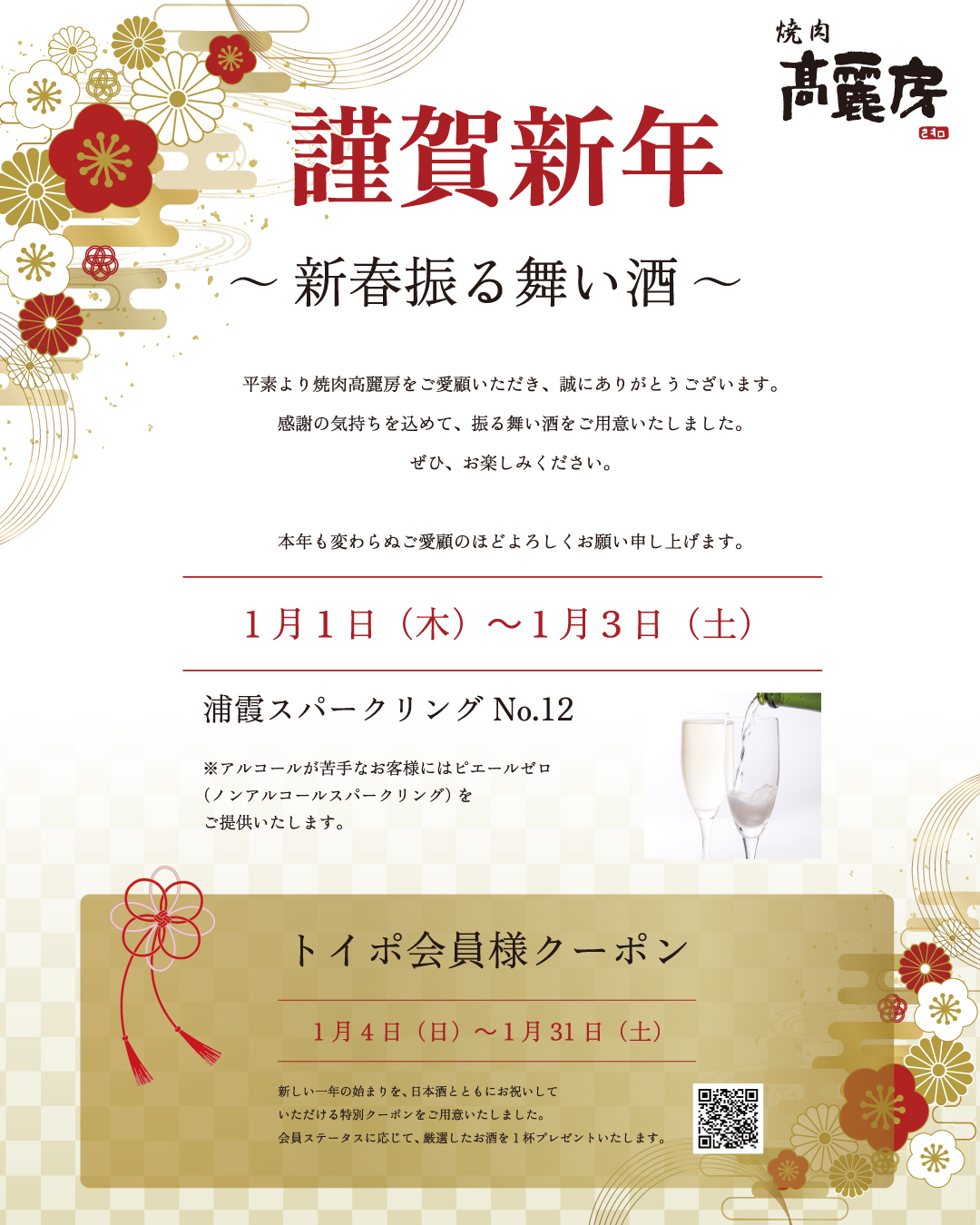 感謝の気持ちを込めて振る舞い酒をご用意いたします。是非お楽しみください。(※無くなり次第終了となります。あらかじめご了承ください。)